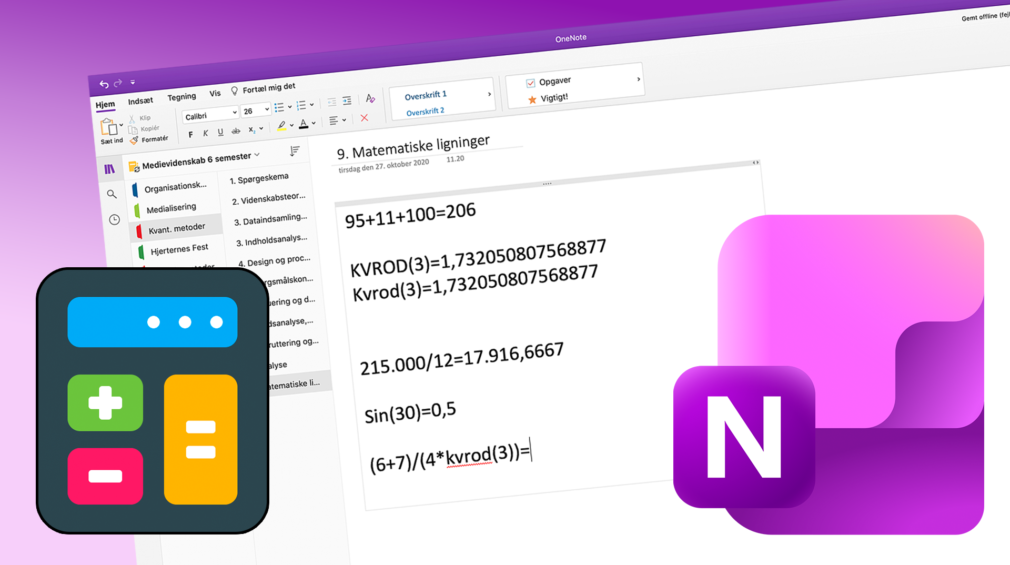 OneNote Mac – Brug lommeregneren