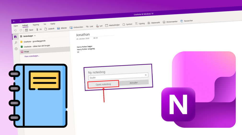 OneNote Windows 10 – Opret notesbøger og sektioner