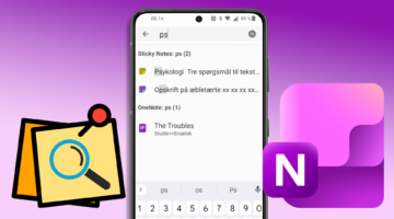 OneNote Android – Søg i Sticky Notes