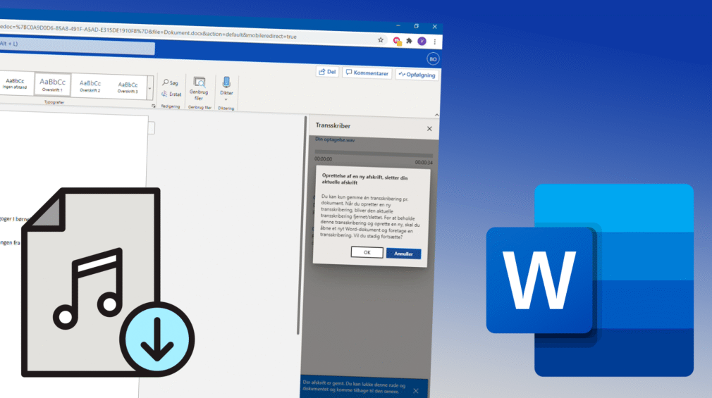 Word Online – Arbejd videre med tekst fra lydfil