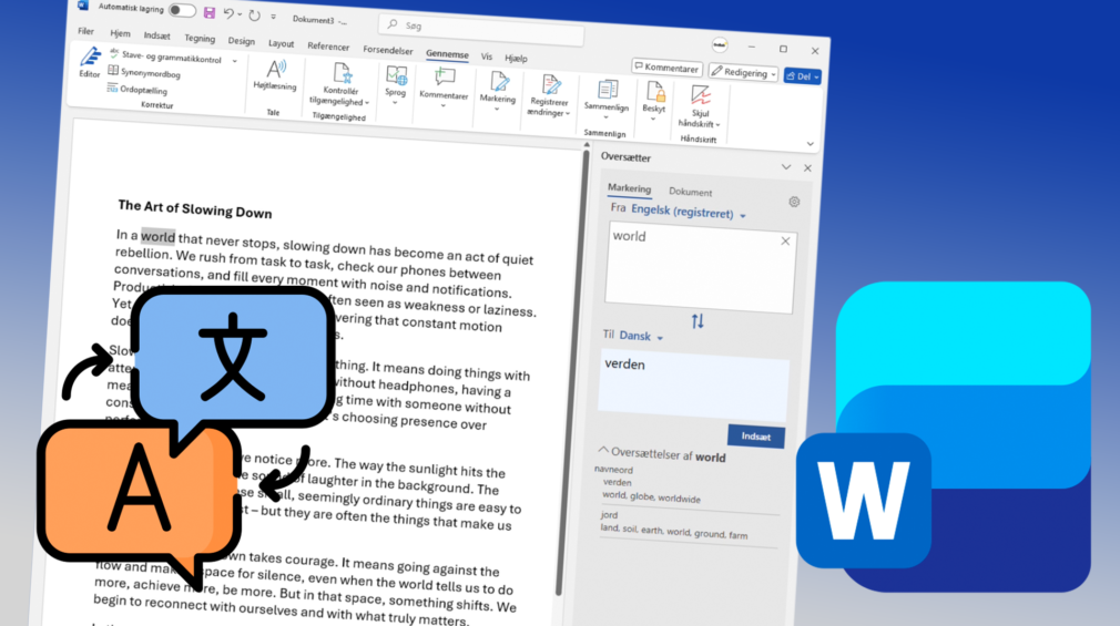 Word Windows – Oversæt tekst